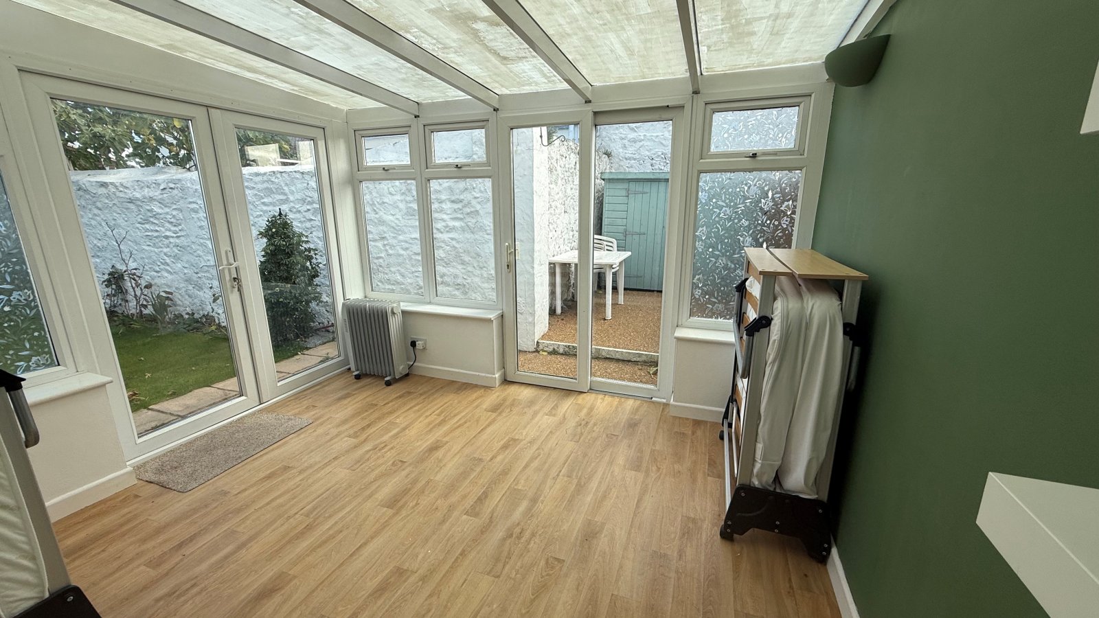 - Rear Patio, Grassed Garden & Shed