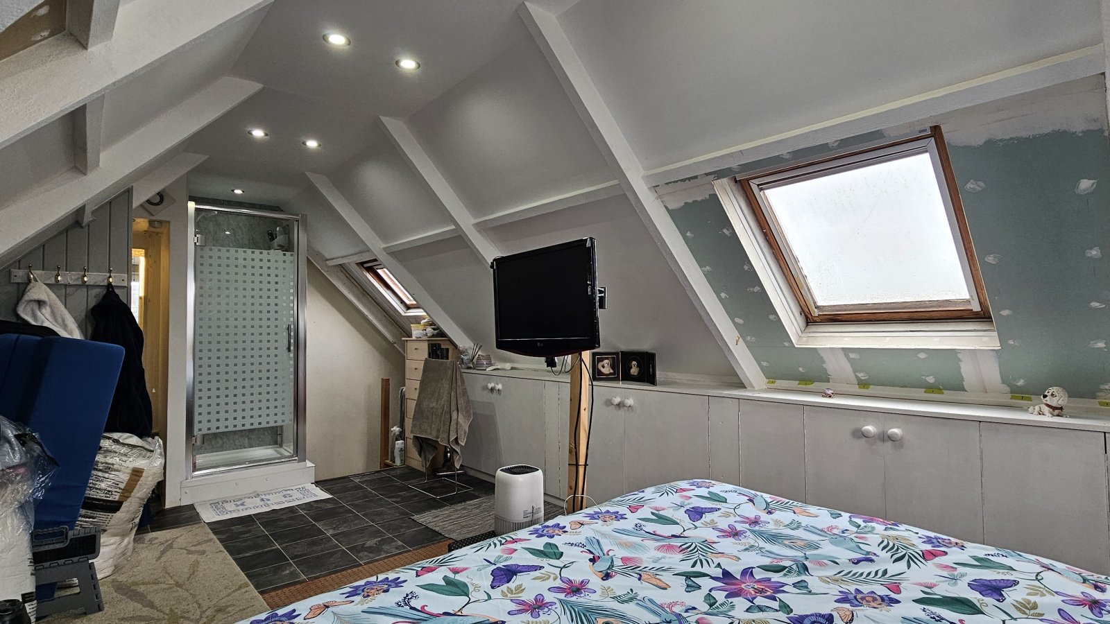 Newly introduced to the local market, Greenacres is a two-bedroom detached home ideally located on Victoria Avenue in St Sampson. Positioned conveniently between Town and The Bridge, the property enjoys easy access to a wide range of amenities, all within a five-minute drive. The accommodation comprises a welcoming L-shaped open-plan living area, with a ground-floor bedroom situated just off the living space. This layout makes the property particularly well suited to downsizers or those seeking the convenience of downstairs living. The kitchen leads through to a utility area and bathroom, which remains unfinished and offers excellent scope for a purchaser to complete and personalize to their own taste. On the first floor, the property benefits from a master bedroom with an en-suite shower room, which has been stylishly finished by the current owners. Externally, Greenacres offers private parking for two to three vehicles, along with a rear garden and shed. There is further potential to create additional parking or extend the garden, subject to requirements. For further information or to arrange a viewing, please contact Cranfords on 01481 243878.