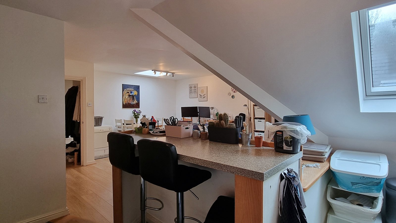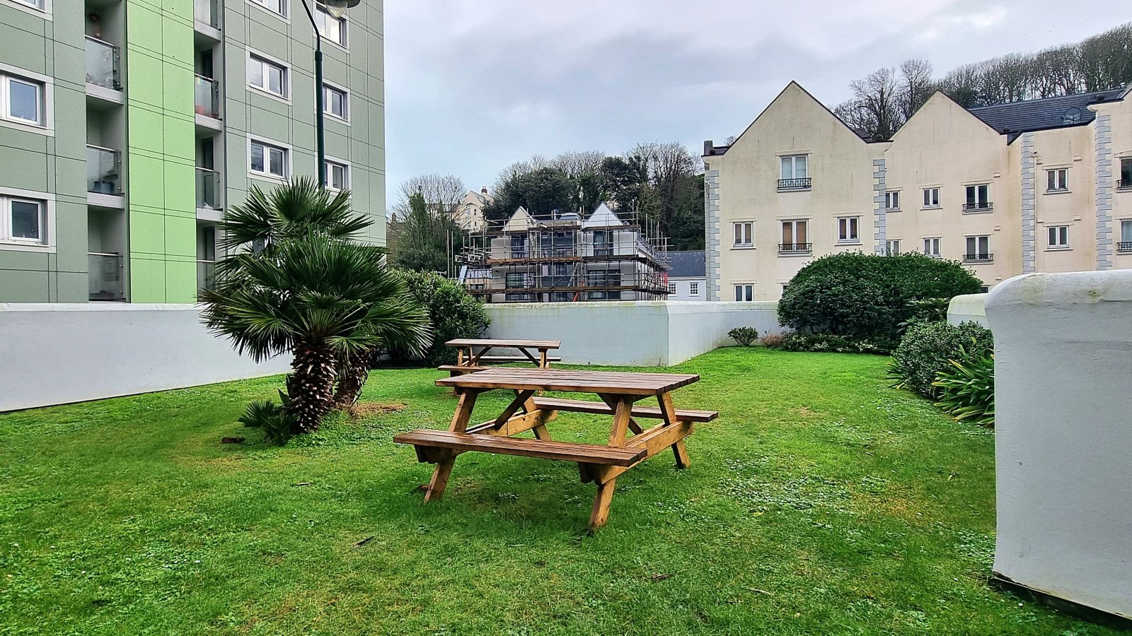 Cranfords are pleased to present Apartment 89, La Charroterie to the local market. Situated on the top floor of Block J within this prestigious and immaculately maintained development, the apartment benefits from lift access directly to the top floor. Additionally this apartment is just a short stroll from town making it an ideal purchase for professional first-time buyers, investors, or those looking to downsize. The accommodation comprises a welcoming entrance hall providing access to all principal rooms. The standout feature is the bright and spacious open-plan living area, enhanced by multiple Velux windows which allow an abundance of natural light to flood the space throughout the day. The living area is both well-presented and thoughtfully arranged, offering a comfortable and contemporary environment for modern living. Further accommodation includes a generously proportioned bedroom with ample space for storage, along with a well-appointed bathroom, both finished to a good standard. Externally, residents can enjoy beautifully maintained communal gardens, cared for as part of the service charge. The property also benefits from secure underground parking with one allocated space, in addition to ample visitor parking. Early viewing is highly recommended to fully appreciate the quality and lifestyle on offer at Apartment 89, La Charroterie.